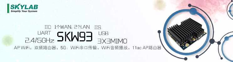 SKW93A符合802.11ac协议,有2个串口,USB,IIS,IIC,SD;带有1个WAN,2个LAN!模块支持AP模式,客户端模式,中继模式和串口WiFi!