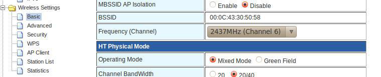 在右边具体设置中选择设置网络模式、网络名称(SSID);