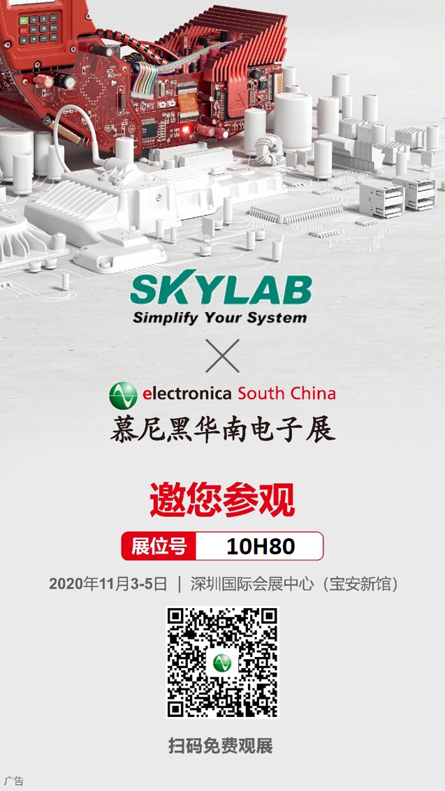 慕尼黑华南电子展(electronica South China)是继慕尼黑上海电子展(electronica China)之后,慕尼黑电子展这一品牌进入中国后第二个子品牌展会。展会将汇聚国内外知名企业,吸引行业优质买家及精英,为蓬勃发展的华南地区电子产业市场创造更多商机。AI、5G、物联网等创新技术为行业赋能,“智能+”将成为各大应用场景核心。慕尼黑华南电子展将聚焦智慧出行、智慧工厂、智慧生活三大热门创新应用。SKYLAB深耕物联网领域,旨在通过将无线模块赋能于智慧城市、工业物联网、车联网、智能家居等IoT+行业应用的细分市场,以连接的技术为人与物、物与物的沟通提供支撑。