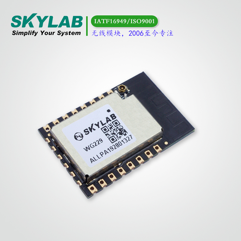 WG229拥有一个内置天PCB板载天线,还有一个IPEX座子用来外接天线,有串口、PWM、GPIO……接口。SKYLAB提供全方位的技术支持,可定制软件功能!