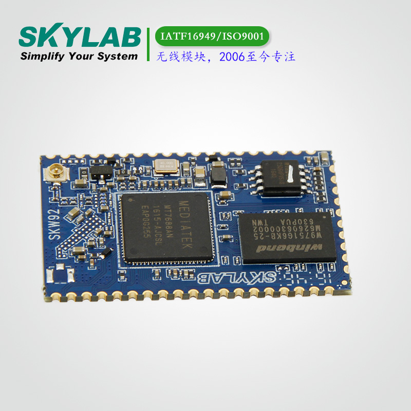 SKW92B主芯片是MTK的MT7688A。它是符合802.11n Wi-Fi标准的1T1R无线设备。它包含一个580MHz MIPS的CPU,1个高速以太网PHY,1个USB2.0主设备, I2C/PCM和多重低速IOs.