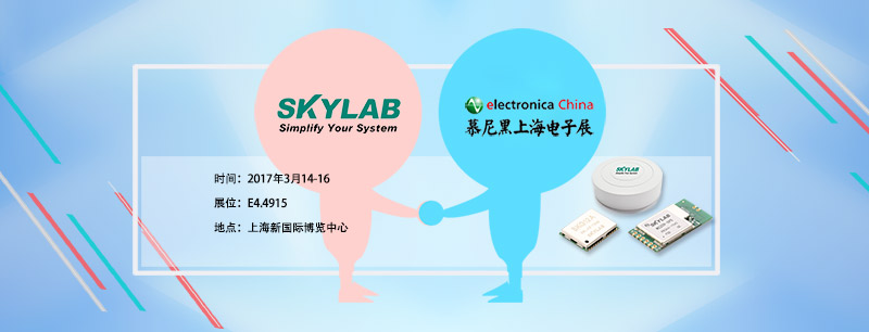 SKYLAB将于2017年3月14-16日在参加在上海新国际博览中心举办的上海慕尼黑展,展位号E4.4915,欢迎光临!上海慕尼黑展涵盖集成电路、电子元器件、组件及生产设备,全方位展示电子产业链的关键环节,将以“智领未来世界”为主题,依托物联网、工业及汽车应用领域这三大主线、分主题为大家呈现科技前沿技术。