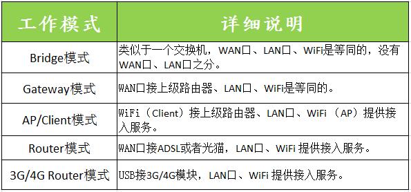 SKW92A广应用IOT领域,集成了802.11n MAC和基带,1 2.4GHz无线广播设备和前端模组, 1580MHz MIPSCPU, 1个高速以太网PHY。下面来介绍一下 SKW92A的五种工作模式