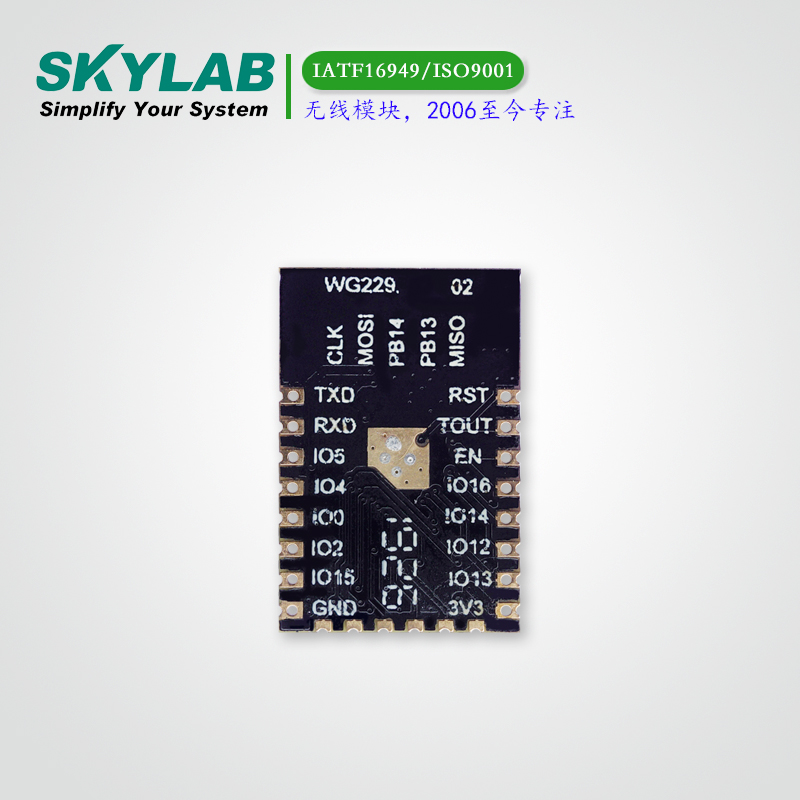 WG229拥有一个内置天PCB板载天线,还有一个IPEX座子用来外接天线,有串口、PWM、GPIO……接口。SKYLAB提供全方位的技术支持,可定制软件功能!