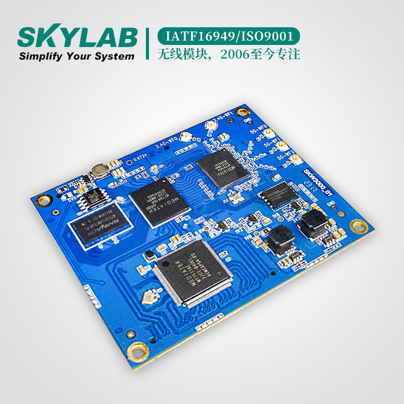 WiFi6模组SKW3000基于MT7981A+MT7976C+MT7531AE芯片开发,符合802.11 a/b/g/n/ax协议。该WiFi6模块集成了1个双核 MIPS1004Kc(880MHz),3 端口GBE交换机,USB2.0/3.0,SD-XC。