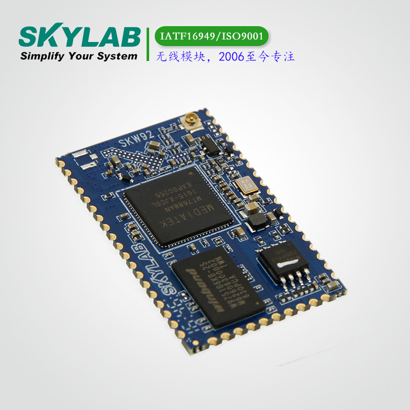 SKW92B主芯片是MTK的MT7688A。它是符合802.11n Wi-Fi标准的1T1R无线设备。它包含一个580MHz MIPS的CPU,1个高速以太网PHY,1个USB2.0主设备, I2C/PCM和多重低速IOs.